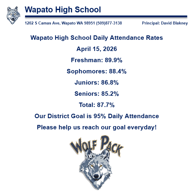 Wapato High School families—time is flying! ⏳Our seniors have just 38 school days left, and all other students have only 43 days remaining this year. Every day matters!Let’s finish strong—be at sch...